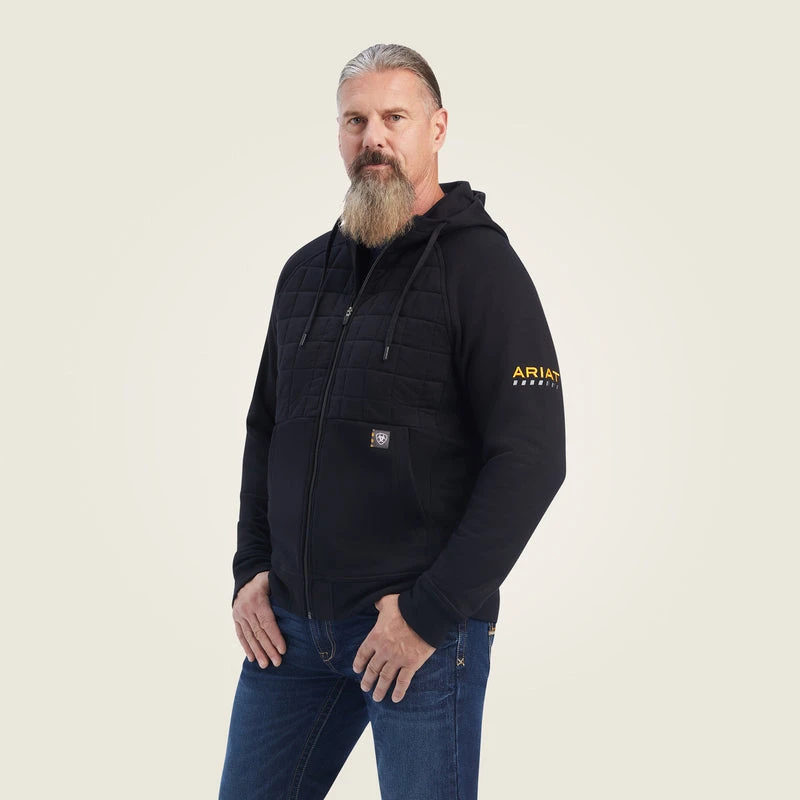An Ariat hoodie meets an Ariat jacket and combine their features to create the ‘Rebar Regulator’. The Regulator has a water-repellent fleece body and has quilted insulation in the top front and back panels. Stay warm my friend.