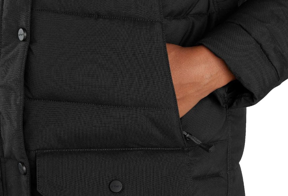 Carhartt’s Montana utility coat is built to last from Carstrong® quilted nylon that blocks wind and sheds light rain. Synthetic insulation, a soft sherpa fleece lining and elastic cuffs hold your body heat in during blustery weather.