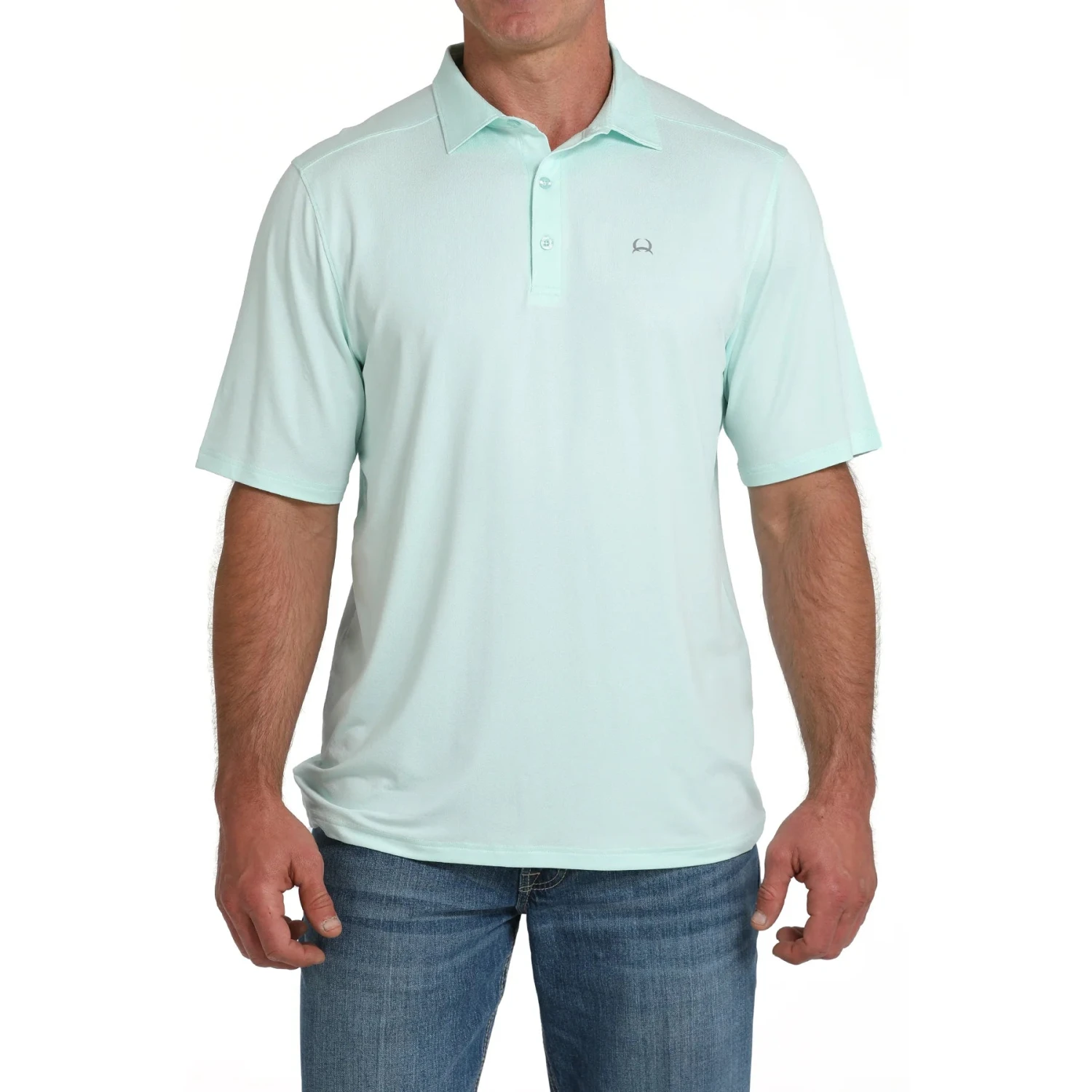 - Light blue polo t-shirt