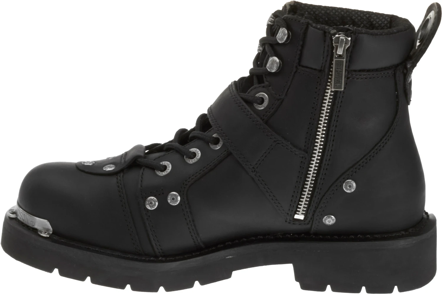 - Designed with 5 pairs logo metal eyelets and two-pairs fast lace hooks, a front cross strap with logo buckle, metal Harley® badging on toes and heels, and a Harley® Bar & Shield V-Wing logo on the sides