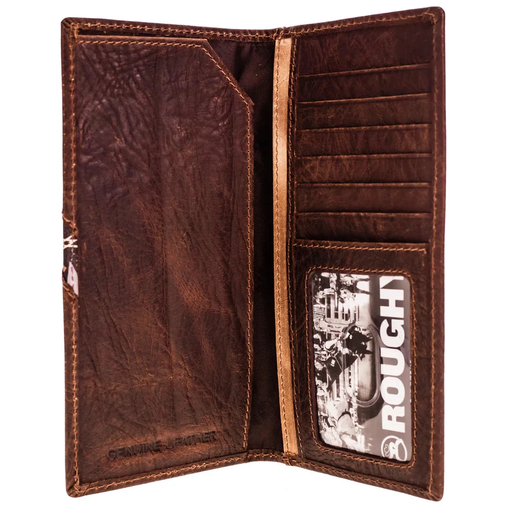 - Brown leather Laser cut with Roughy logo and Aztec inlay