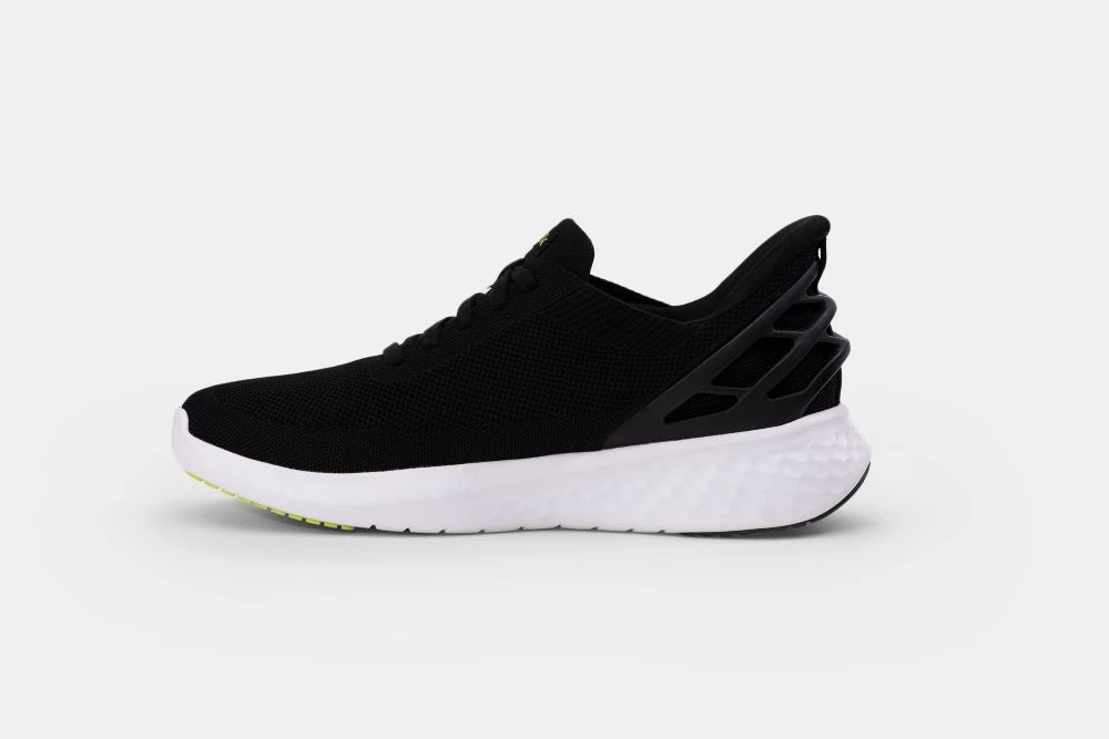 The KIZIK signature cage is a spring-back heel that allows you to step into this sneaker without bending over or ever re-tying again. Versatile enough for your busy life.