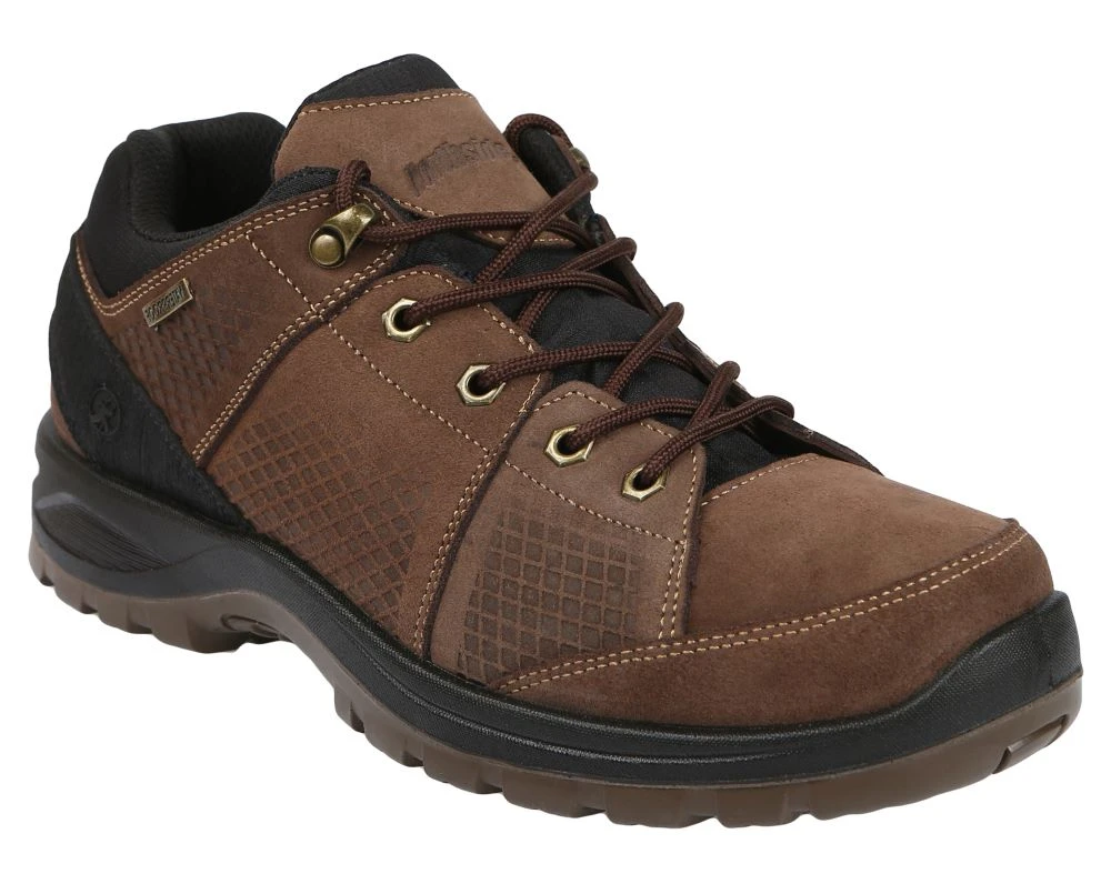 - Rugged embossed leather upper features a waterproof seam sealed construction