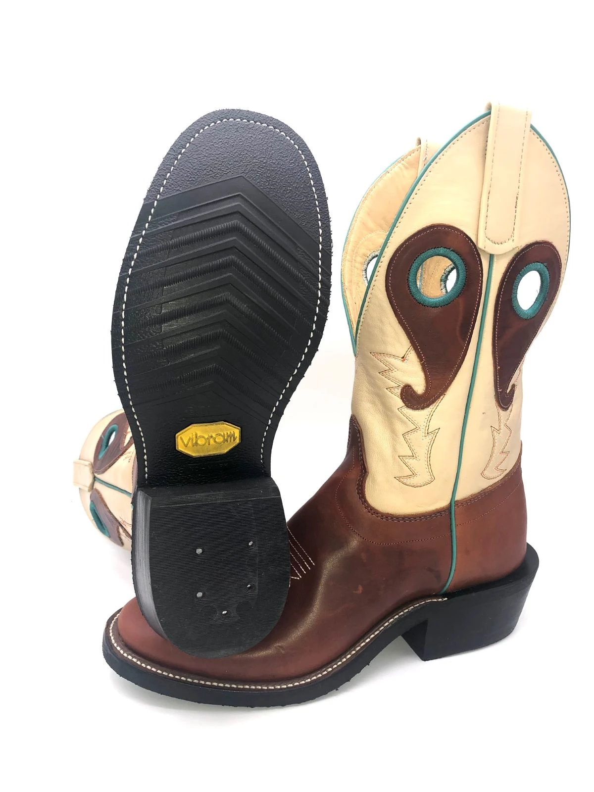 The Olathe Rough Stock boot is handmade in Mercedes, Texas. If you are looking for a high quality, artistic boot that is going to stand up to the test of time and wear, you will love Olathe. They are resole-able for when the sole starts wearing out but the boot is still in great shape!