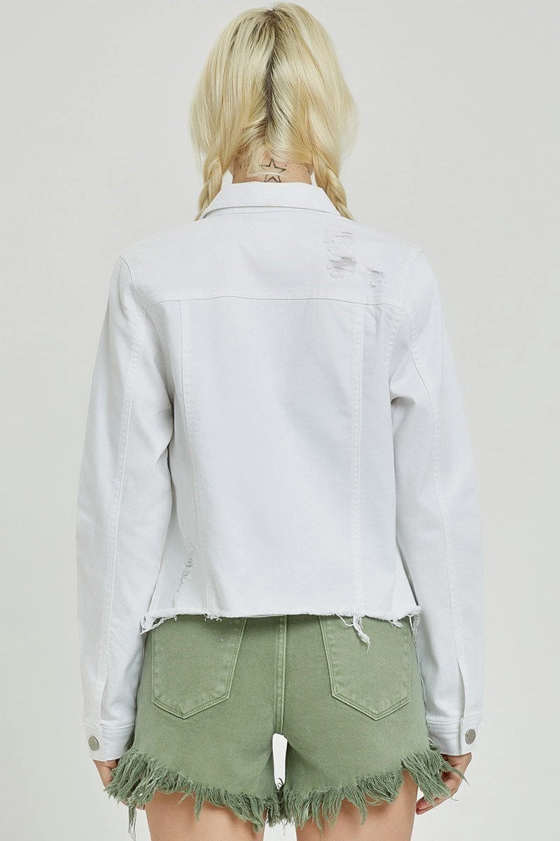 Take a look at this stylish jacket! It adds an extra layer to your already stunning attire and takes it up a level. With the simple frays it adds a little extra wow factor!