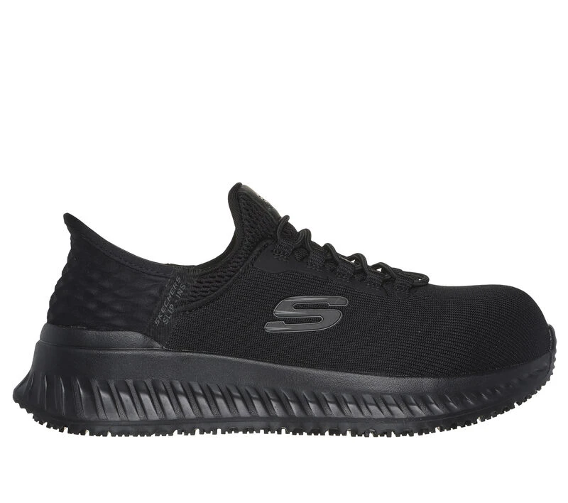 The convenience of a slip-on combined with comfort and safety makes for a unique composite toe work shoe. These are also slip-resistant, feature a Skechers Air-Cooled Memory Foam® insole and offer electrical protection.