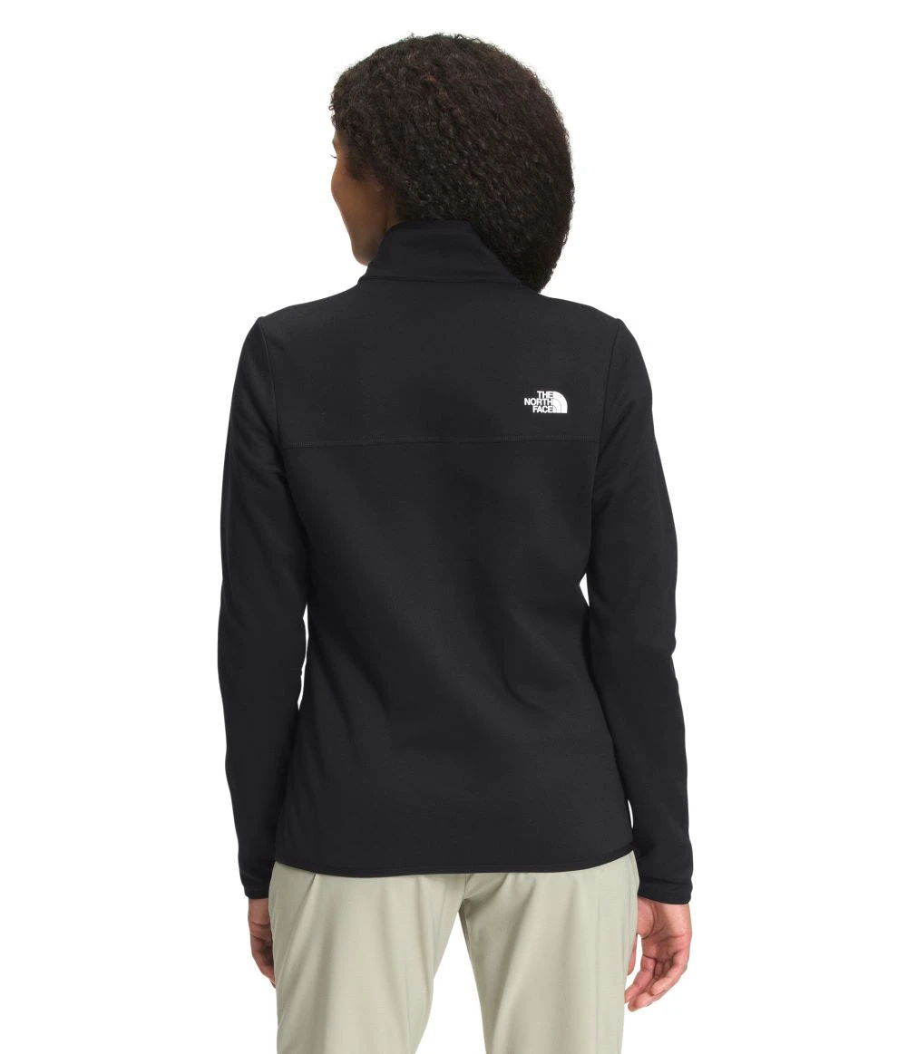 The recycled polyester and elastane fleece fabric offers warmth and lightweight, stretchy wear for the milder temps. Zippered hand pockets provide secure storage for essentials.