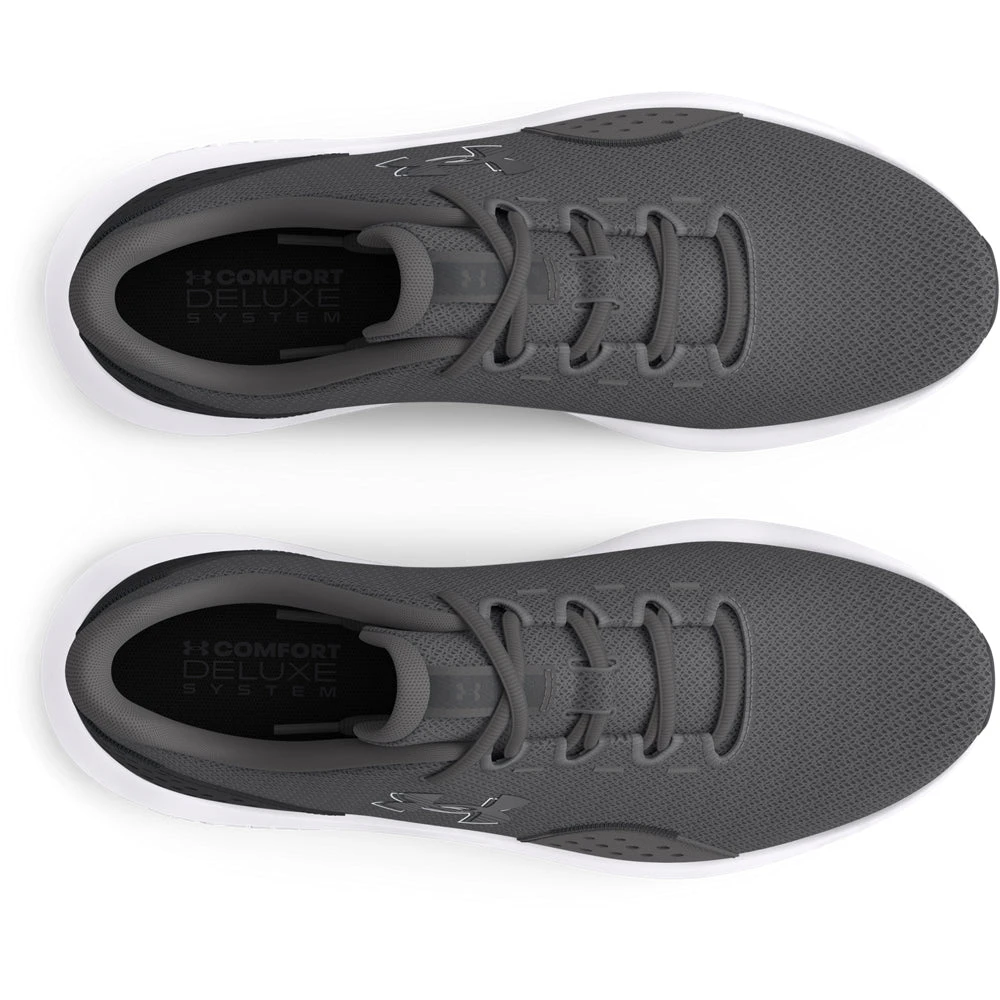 ‘Charged Surge 4’: Under Armour added a synthetic overlay on the outside toe area for more support at a pressure point and two lace ‘keeper loops’ to keep the laces centralized. Also, the rubber outsole has different lug placement. You can still enjoy a breathable mesh upper and the Charged Cushioning® midsole that provides all day comfort.