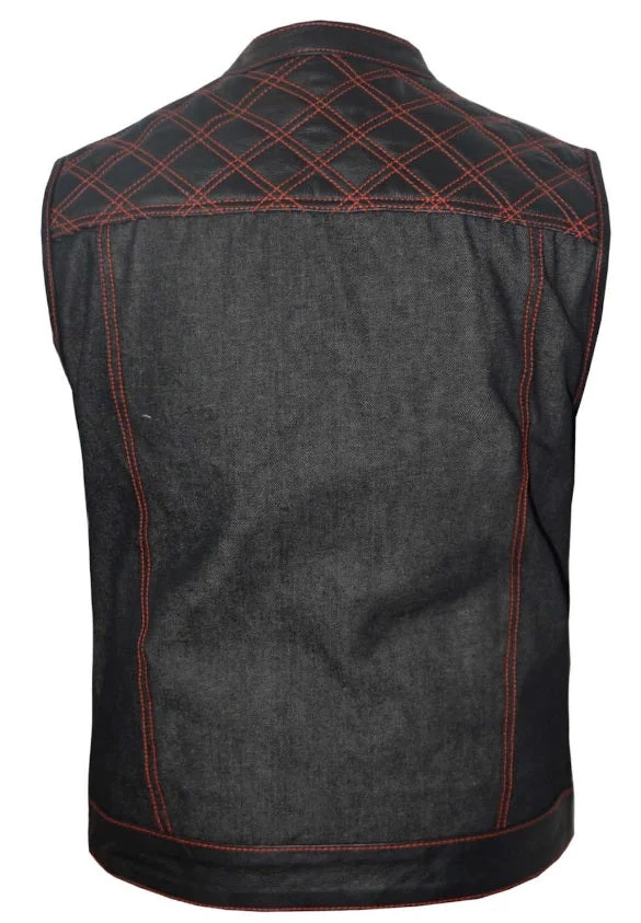 - Mens Denim / Cowhide Leather Club Vest