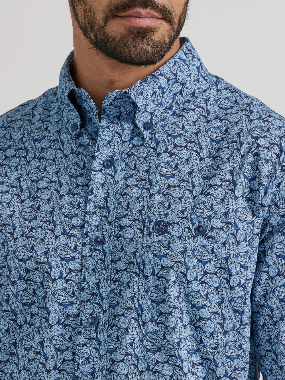 Set your look apart from the crowd with this classic button down, blue print shirt from the George Strait collection.